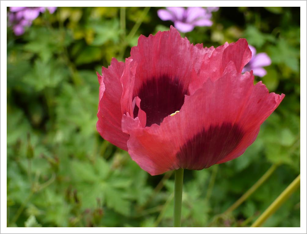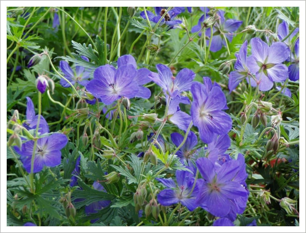 Geranium 'Johnson’s Blue' has lilac flowers in early summer. It is good for the front of a border or hanging over a raised bed. If you cut it back after the first flush of flowers, it will reward you with re-growth and a second flush of flowers later in the year.