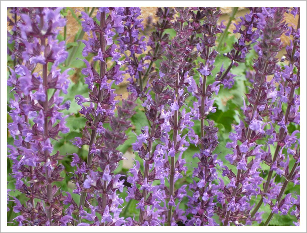 Salvia x sylvestris ‘Mainacht’ is a pretty plant for the middle of a sunny border or in dappled shade. It bears purple flower spikes in summer.