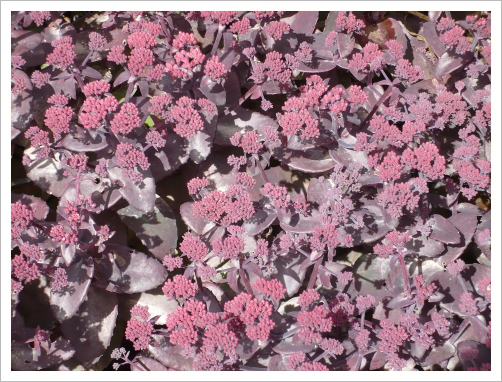 Sedum ‘Purple Emporer’ is a more compact Sedum with purple flowers in late summer which attract butterflies and bees.