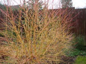 One of my favourites for winter colour is Cornus ‘Midwinter Fire. which seems to glow, even from a good distance away.